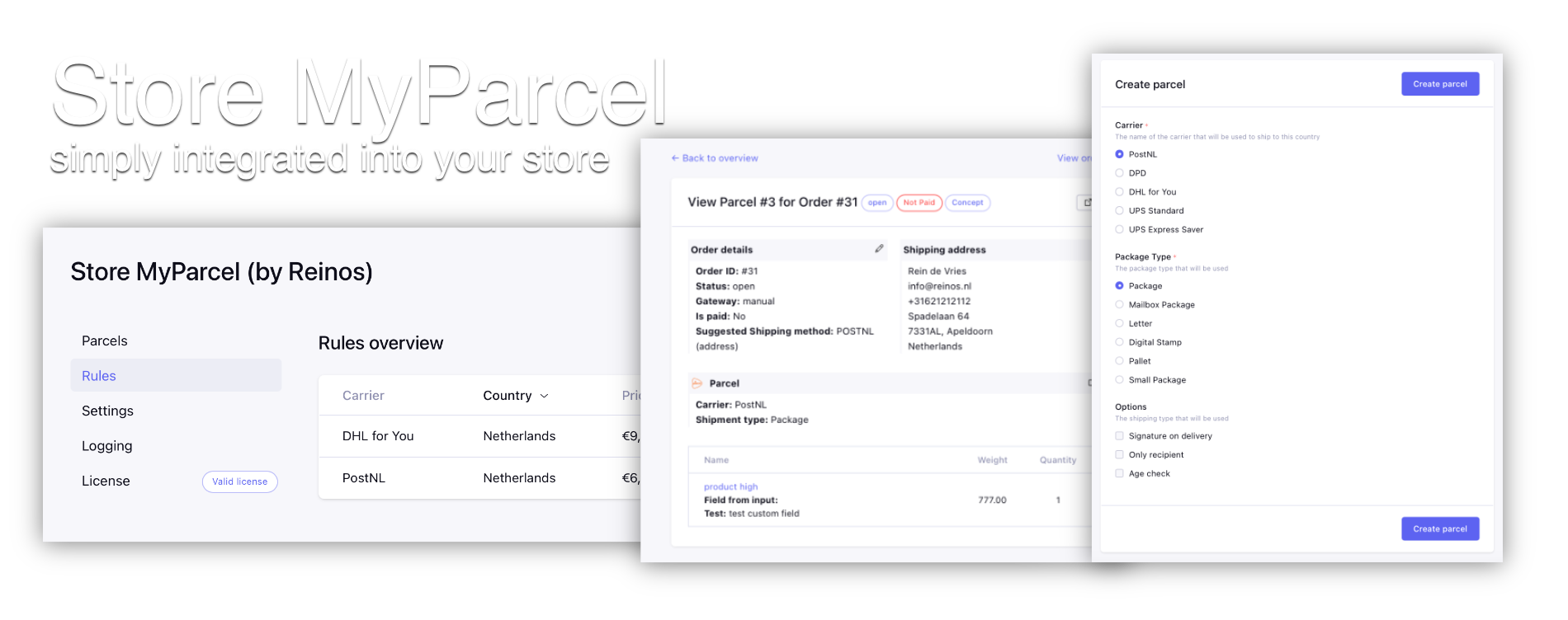 •Streamline your shipping workflow with Store MyParcel, the complete MyParcel integration for ExpressionEngine Store. Export orders directly to MyParcel where you handle label generation and advanced shipping features, ensuring you always have access to the latest MyParcel functionality. Perfect for Dutch webshops using PostNL, DPD, DHL, and UPS carriers.